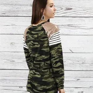 Rose Gold Sequins & Stripes Camo Long Sleeve Top