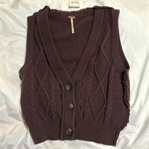 NWT Free People 3 button Sweater Vest color is black Raisin. It’s a dark brown color in size Medium. Brand New and in new condition. Really cute