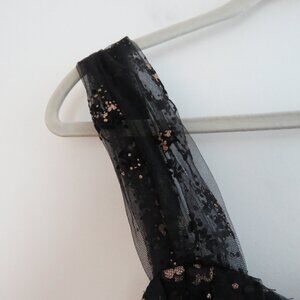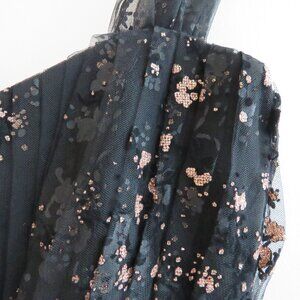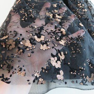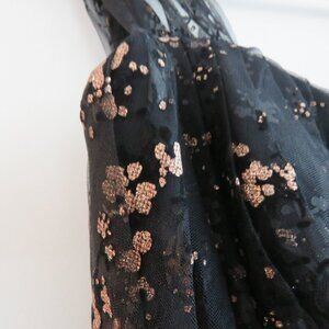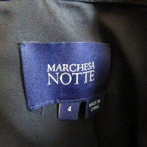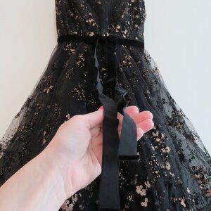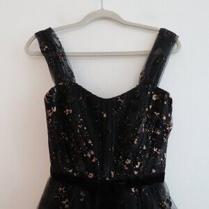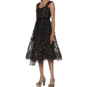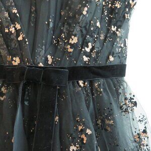 MARCHESA NOTTE Flocked Glitter Tulle Tea Length Dress Black Gold - Size 4