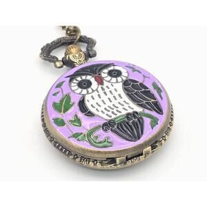 Enamel Owl Pocket Watch – Unique Wildlife Accessory, Personalizable Vintage Look