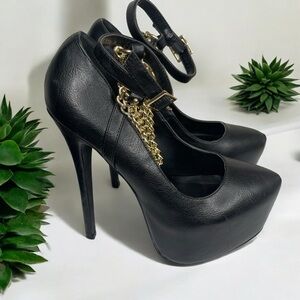 Brand new with box. High 6in platform stiletto pumps. Ankle buckle strap with gold chain details. Ask any questions.