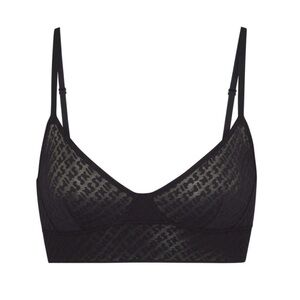 SKIMS Onyx mesh bralette with logo design all over