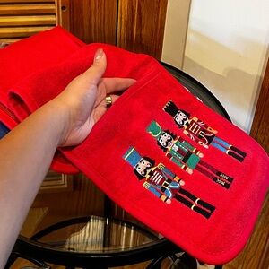 - 2 Red towels with Nutcracker embroidery ๐