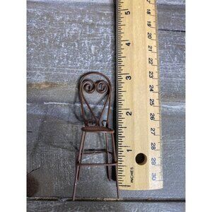 Dollhouse Miniature White Table 2 Chairs Potted Lucky Bamboo Plant Metal Chairs