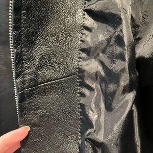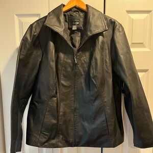 Brand new with tags. Genuine leather jacket with pockets. Plus size. Very nice quality, no problems, would just like something a little longer.