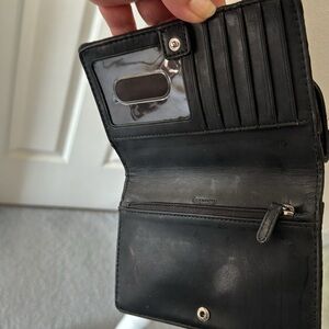 Snaps open to reveal wallet interior for cards , zip change purse etc