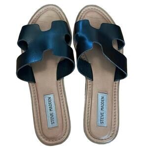 Steve Madden Black Leather Slip On Mules Size Women’s 8.5 Flat Casual Summer