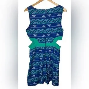 As U Wish Cutout Print Dress Aztec southwest side cutout blue green print
