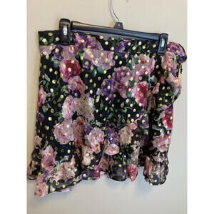 Smak Parlor Floral Gold Polka Dot True Wrap Ruffle Skirt NEW Size Large