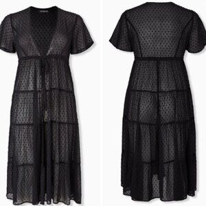 Torrid 1 1X 14/16 Black Clip Dot Sheer Chiffon Tiered Kimono Duster Coverup