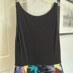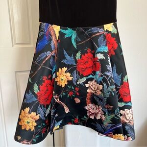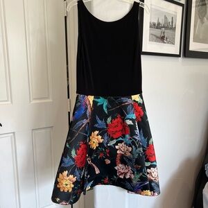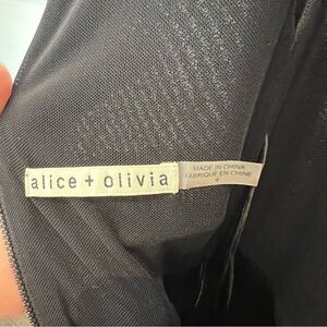 This Alice and Olivia Dress Size 4 with a stretchy black material on top and a floral thicker material on bottom. It’s like new, no wear and tear. Beautiful for any event! The back covers perfectly to wear a bra with it without any problem. It can’t wait to be worn by you!