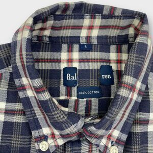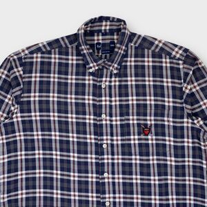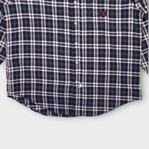 VINTAGE Ralph Lauren Shirt Mens Large Polo Golf Crest Logo Check Navy Red Preppy