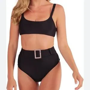 Black High Waisted Two Piece Set | Black High Waisted Bikini with Belted Bottom