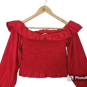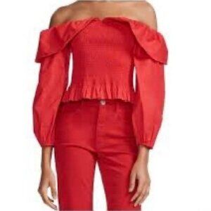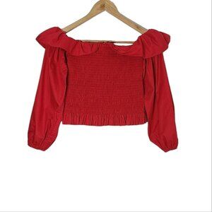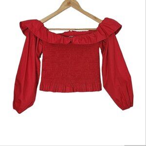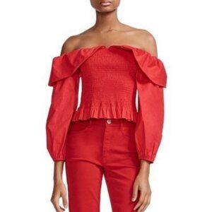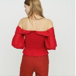 MAJE Lenda Off-The-Shoulder Smocked Cotton Top Women's Size S