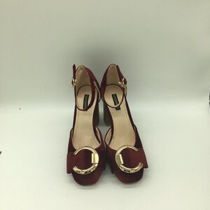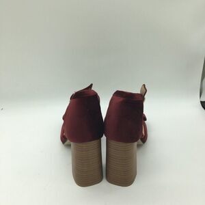 Red Round Toe Pumps Chunky Mid Heel Ankle Strap Dress Shoes