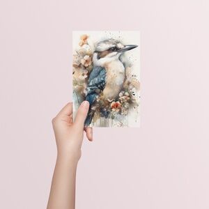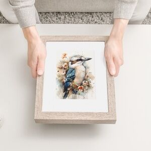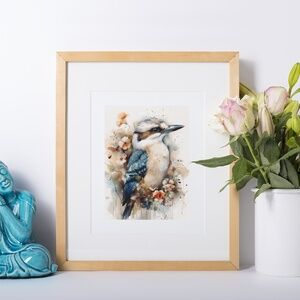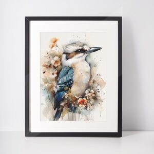 Watercolor Kookaburra Bird Portrait Wall Art Illustration Print Unframed