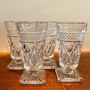 Set of 4 Vintage Imperial Glass Cape Cod Juice Square Base Pressed Glass Goblet