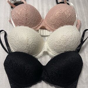 3-Pack Lace Push-Up Bras - Size 34B - NWT, Never Worn Pink White & Black