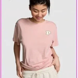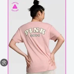 PINK Victoria’s Secret 🔥SOLD OUT🔥 limited edition Pink Friday Collection cotton campus tee in pale pink “chalk rose” with Y2K graphics😍🔥💖