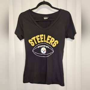 NFL team apparel black Steelers V neck graphic t shirt. Good condition, size medium.