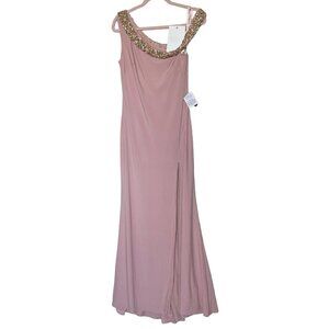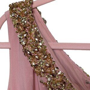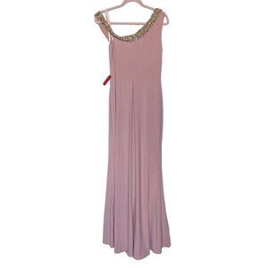 Mac Duggal Dress Gown Size 6 Pink Beaded Drop Shoulder Rhinestones 68163 $398