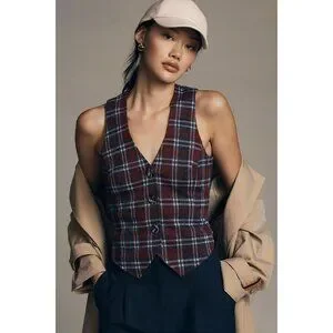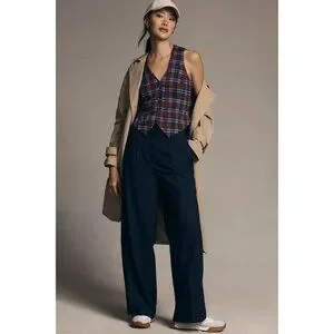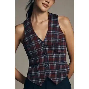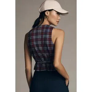 Anthropologie Plaid Vest with Buttons and Back Belt in Navy by Eva Franco