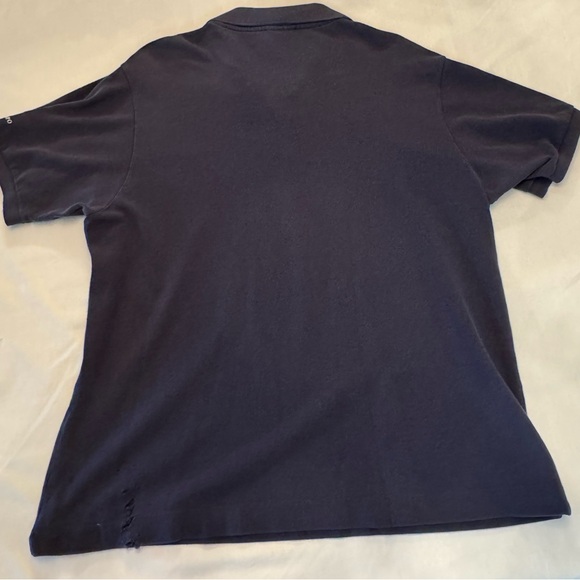 This Lacoste polo is super cool and definitely a collectors item. The shirt is in over all great condition, but does have a patch on the back lower left side of the shirt that does have holes in it and is completely unnoticeable when the shirt is tucked in. I’m offering an amazing price on the shirt because of the holes in the back.