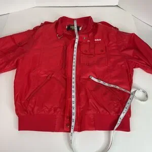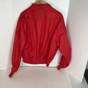 Stay stylish and warm this vintage Firestone windbreaker jacket. Made with softshell fabric and insulated with polyester, this mid-length jacket is perfect for fall, winter, and spring. The full zip closure and band collar style add to its casual and travel-friendly design. The red color and Firestone logo accents give it a unique touch. This jacket is available in size L, with a chest size of 42 inches, and is machine washable for easy care. Walk in style with the King Louie Pro Fit windbreaker jacket.
