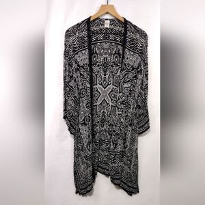 Bila Artsy Open Front Kimono Women's M/L Black White Festival Boho Coastal Retro
