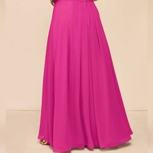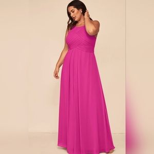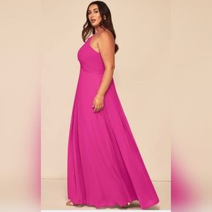 A-Line Pleated Chiffon Floor-Length Dress Fuchsia.