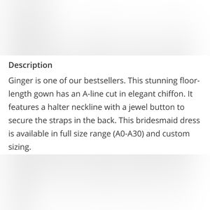 Ginger is one of our bestsellers. This stunning floor-length gown has an A-line cut in elegant chiffon.