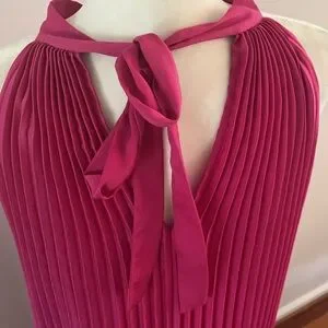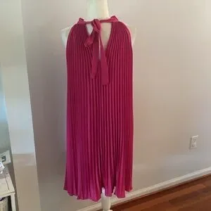 NWT raspberry color fully lined sleeveless please dress tie back at neckline. Gorgeous dress! Size 12. 40 inches long and 21 inches pit to pit lying flat. True Color comes through best on last photo
