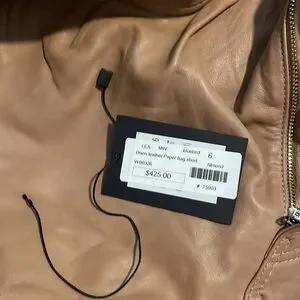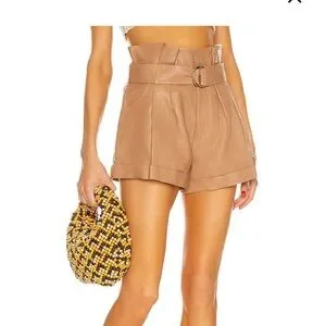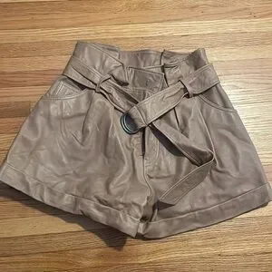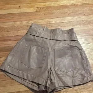 Size six/ high waisted. Camel color. Never worn because they did not fit me but I detached the tags. A little wrinkled since they’ve been sitting for a while!