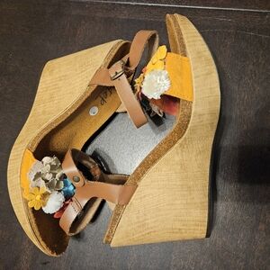 BioStep Women's Leather Floral Wedge Sandals Made In Spain Size US 8.5/41