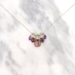 Tags: magical gemstone, melody stone, meditation stone, multi stone necklace, purple stone necklace, handcrafted jewelry, artisan jewelry