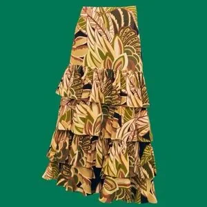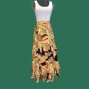 Zara linen viscose blend tropical print high waist long ruffled skirt
