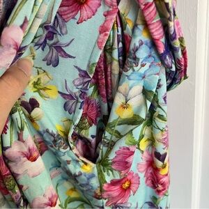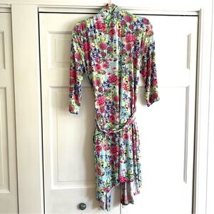 This blue floral bamboo robe from Posh Peanut is in excellent condition. It was never worn, just washed and laid flat to dry.