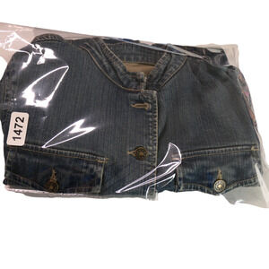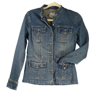 AMI Distressed Denim Trucker Jacket Women Small Blue Vintage Inspired Streetwear