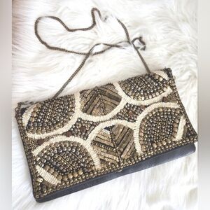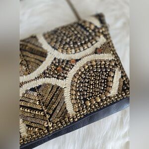 Ecote black leather sequined cluch with removal chain shoulder strap