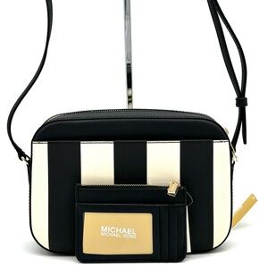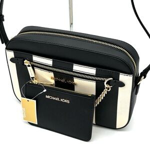 Michael Kors Large EW Zip Chain Xbody Crossbody Bag & TZ Coinpouch w/ID Black