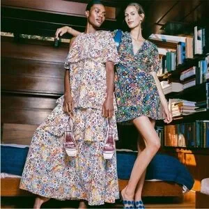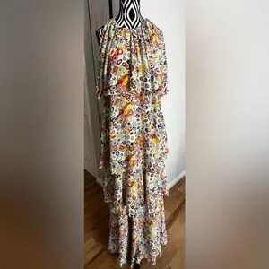 NWT STAUD Caya Tiered Flowy Retro Millefiori Multi Print Maxi Dress