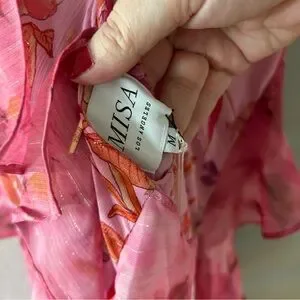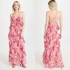 NWT MISA Damita Maxi Dress in Fire Florals Mix Pink Ruffle
