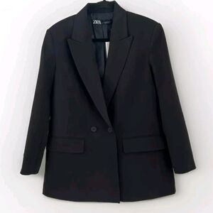 ZARA BLACK DOUBLE-BREASTED OVERSIZED BLAZER size XS