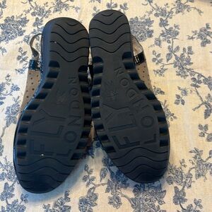 Fly London Yile Wedge Sandals Slingback Leather Peep Toe EUR 40 US 9.5
