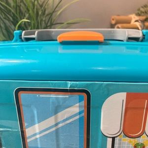 The toy is a return, it is partially open. The sticker on the small suitcase is damaged but otherwise the rest is in new condition.