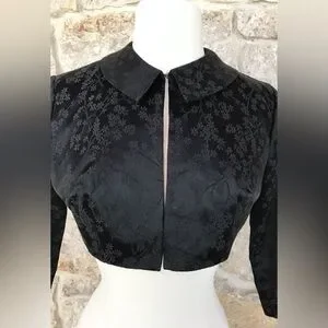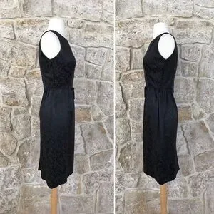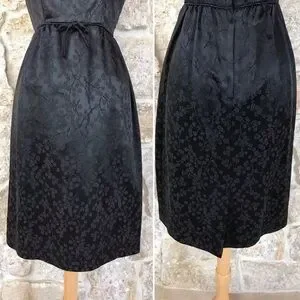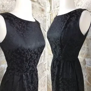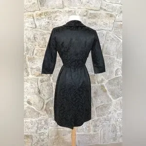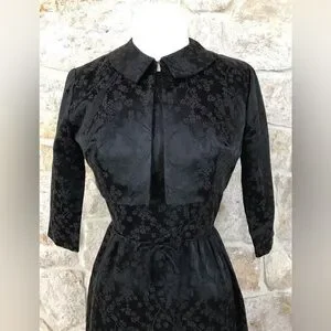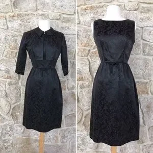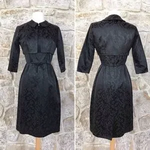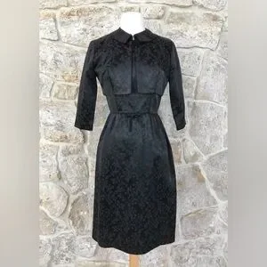 Vintage 50s Black Floral Brocade Dress Set with Kitten Bow Waist Audrey Hepburn