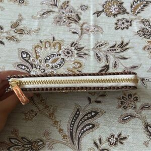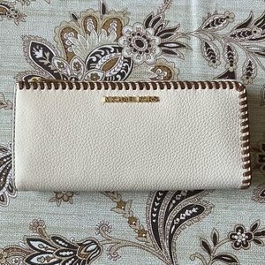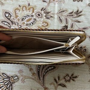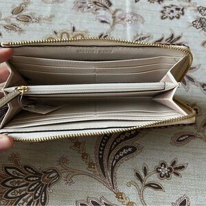 MICHAEL KORS Jet Set Travel Leather Gold-Tone Hardware Quarter Zip Wallet NWT