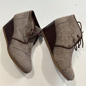 - TOMS Desert Wedge Tweed Brown Bootie Boot Geometric