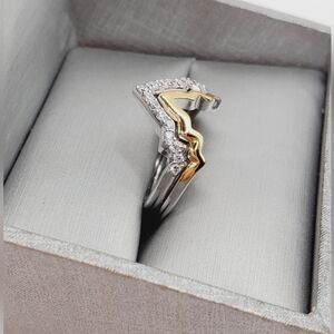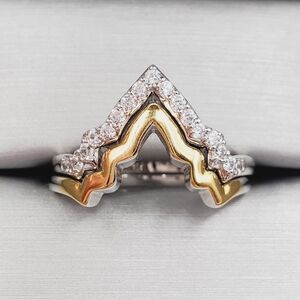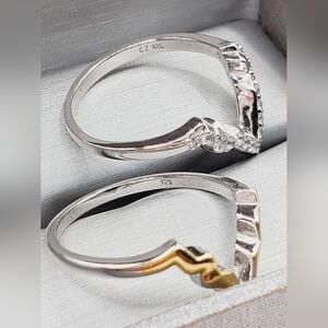 Yellow Gold - 925 Sterling Silver Matching Guard CZ Rings