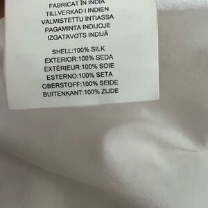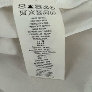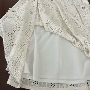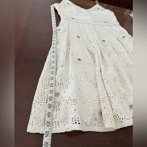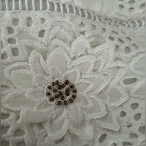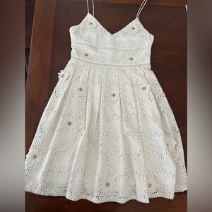 A Michael Kors off-white 100% silk, cocktail dress with beautiful flower appliqués that have bronce-colored pinheads on flower pedals’ center.